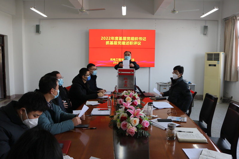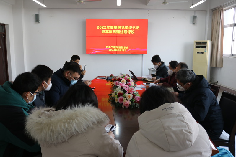 为不断强化党建工作责任制,提升基层党建工作水平,2023年1月3日上午,机电工程学院党总支在B16-305会议室召开2022年度党支部书记抓党建工作述职评议会,学院党总支委员、党支部书记、支部委员参加会议,会议由党总支书记王敏主持。