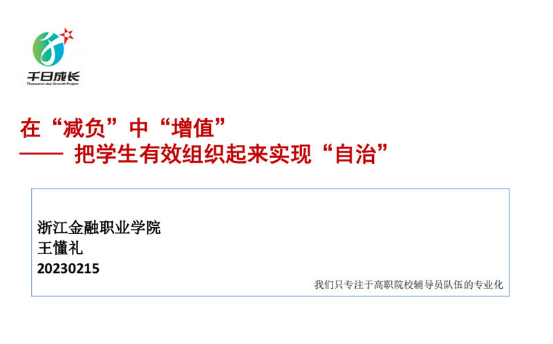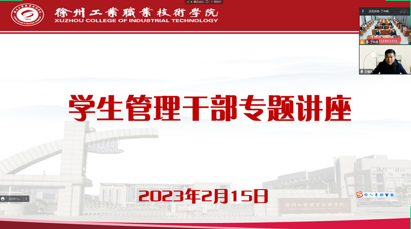 为提升我校学生管理干部组织学生、引领学生的能力和水平,2月15日,我校特邀请浙江金融职业学院学工部王懂礼部长为我校全体学工干部线上作专题讲座,学工部和团委部门负责人、各二级学院副书记出席并聆听讲座。讲座由学工部部长阮浩主持。