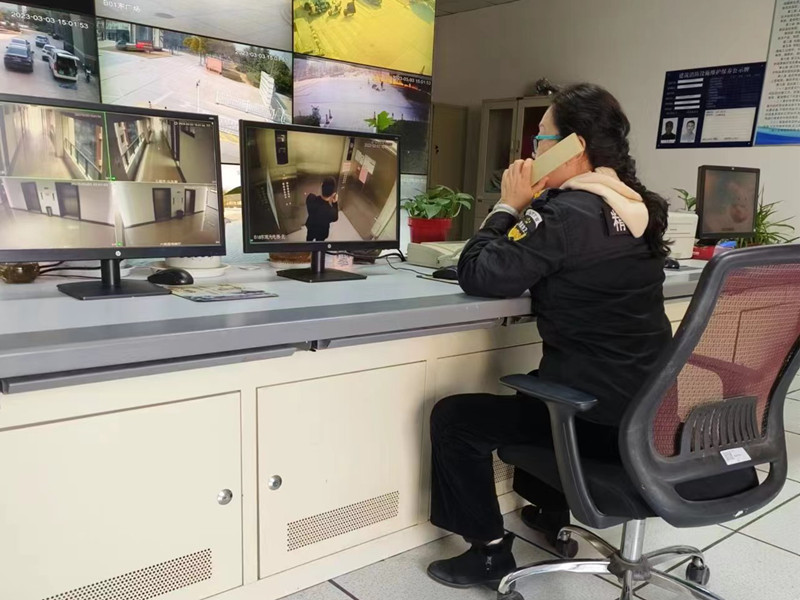 被困电梯内老师通过紧急呼叫装置向监控室求援