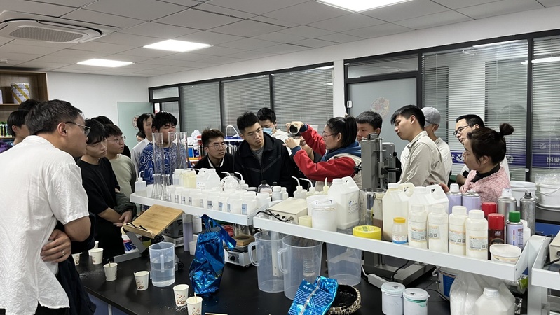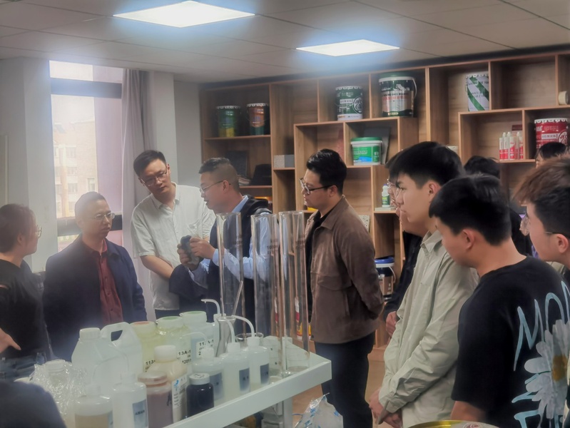 永昇集团人力资源经理刘闫向学生介绍了公司发展历史、主营范围、公司理念、招聘岗位、福利待遇等情况,带领学生参观研发实验室,对公司产品进行讲解,亲自演示产品使用方法并指导学生动手操作。永昇集团执行董事陈慧与陈群玉、赵越结合防水专业特征和行业发展前景进行深入交流,在材料研发、人才培养、学生就业等方面达成共识,下一步将在实习就业基地建设、职业导师聘任方面加强合作。