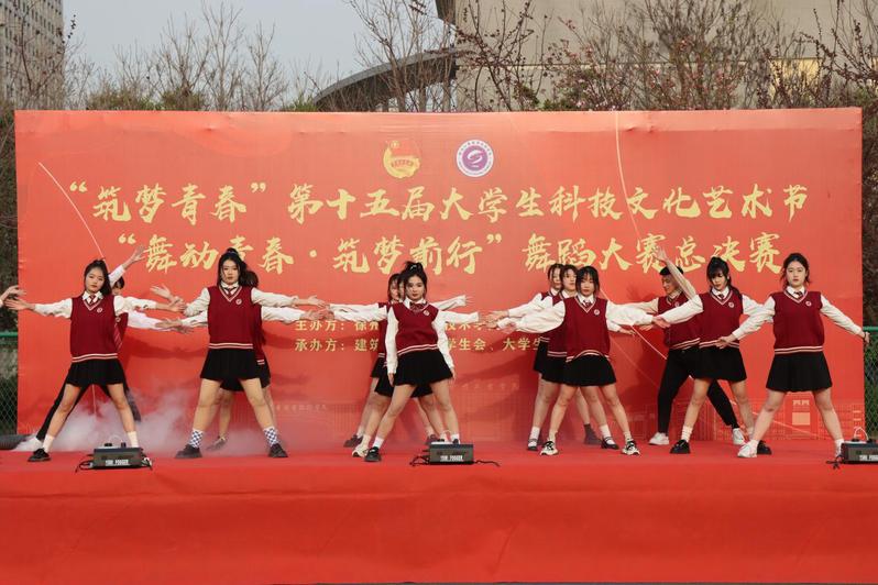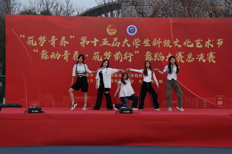 为厚植新时代大学生爱国情怀,提升大学生艺术文化修养,弘扬积极向上的校园文化氛围,3月15日下午,由校团委主办,建筑工程学院团总支承办的“筑梦青春”第十五届大学生科技文化艺术节——“舞动青春·筑梦前行”校园舞蹈大赛总决赛在操场成功举办。建筑工程学院党总支书记张妍妍、校工会主席刘新良、校党委宣传部副部长仲文婷、建筑工程学院党总支副书记赵越、校团委全体工作人员及各二级学院团总支书记出席活动,现场2000余名同学观看了比赛。