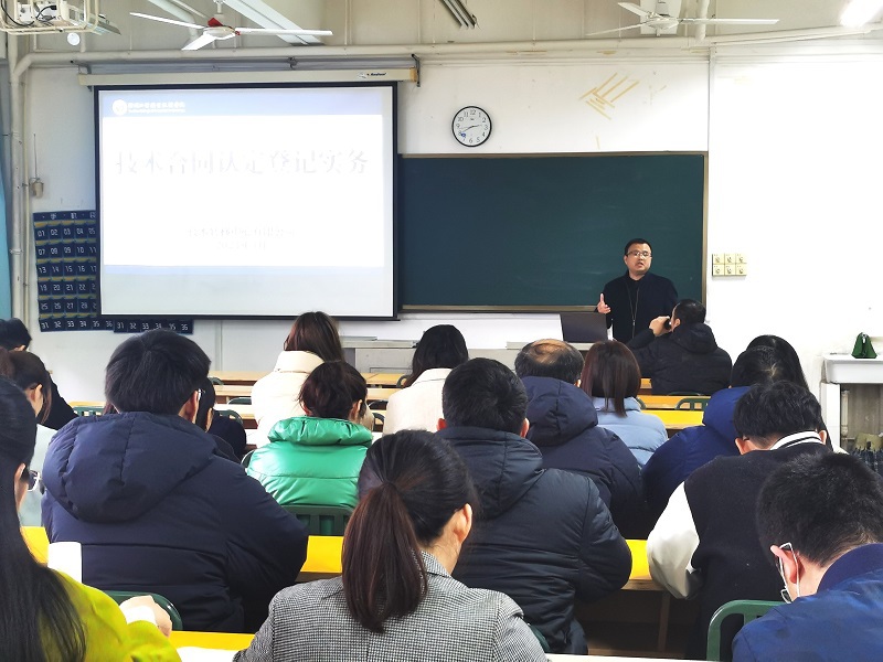 为提高教师业务能力与科研水平,3月22日下午,化工学院召开了课题的申报与管理专题科研讲座,讲座由化工学院副院长刘郁主持,技术转移中心有限公司总经理曹可以《技术合同认定登记实务》为主题做讲座,化工学院全体教师参会。