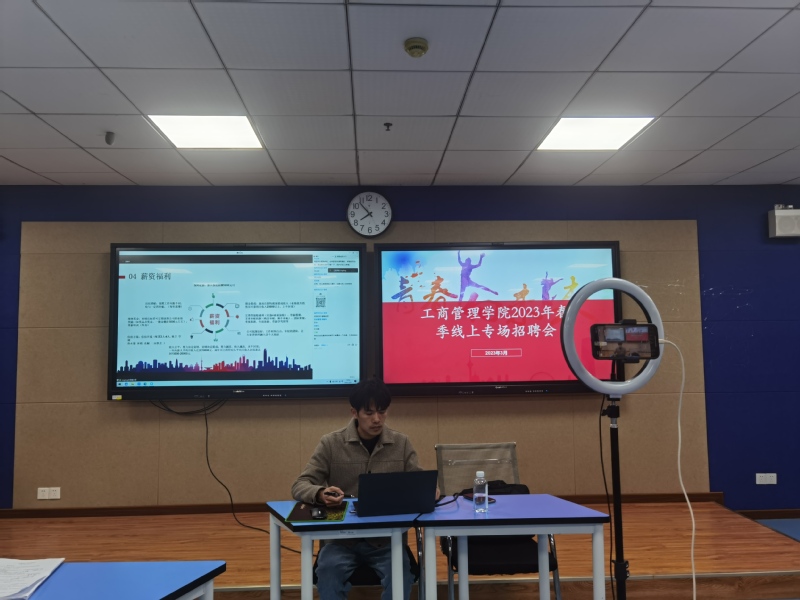为切实做好我院2023届毕业生就业工作,积极拓宽就业渠道,促进毕业生充分就业、高质量就业,为用人单位输送优秀应用型人才,工商管理学院于3月21日成功举办了“春风送暖,惟愿启航”网络专场招聘会,此次招聘会由就业专项辅导员杨旭老师主持,2023届毕业班全体班主任及926名学生参加,采用腾讯会议及学院官方抖音现场直播的形式开展。