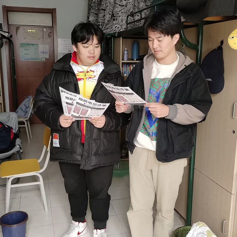 活动中,志愿者在食堂外、宿舍内,向同学们发放由学院精心准备的防诈骗宣传单,讲解常见的电信网络诈骗方式及套路,并对近期发生的电信诈骗案件进行讲解,结合身边相关案例,向同学们普及常见防诈骗手段、防诈骗措施及被骗后如何“自救”等内容。普及反电信网络诈骗专用号码96110、全国涉诈预警劝阻短信系统12381和“国家反诈中心”APP,让防范电信网络诈骗相关知识牢记于心,将防诈宣传落到实处,进一步筑牢了防骗反诈意识,用实际行动践行“我为同学办实事”,切实提升大学生防范电信网络诈骗的意识和能力。