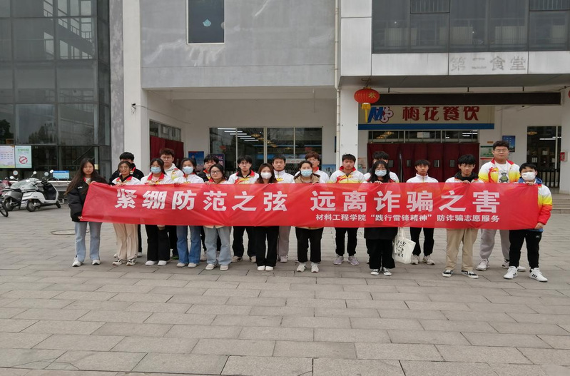 为深入学习宣传贯彻党的二十大精神和习近平总书记关于学雷锋志愿服务工作的重要指示精神,引导广大青年志愿者以实际行动书写新时代雷锋故事,3月24日,材料工程学院组织青年志愿者在校内开展了反诈骗宣传志愿服务活动。