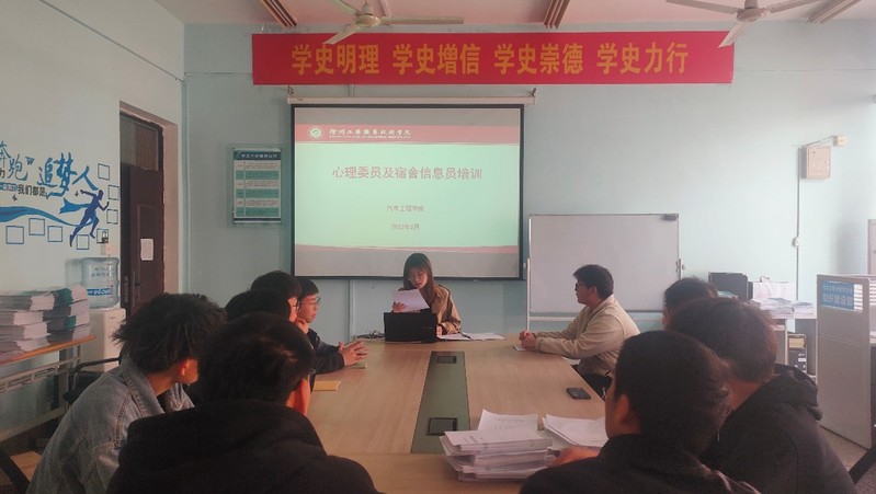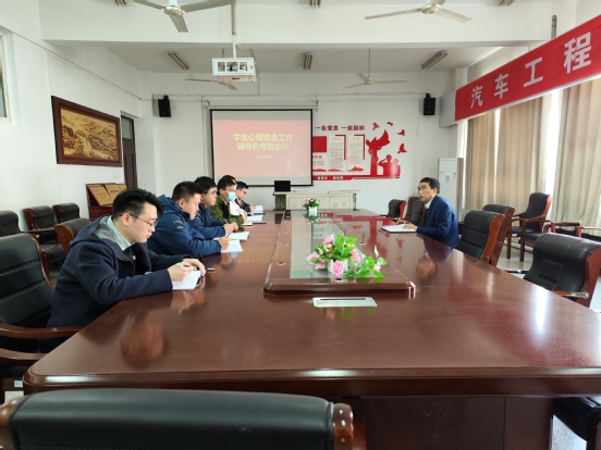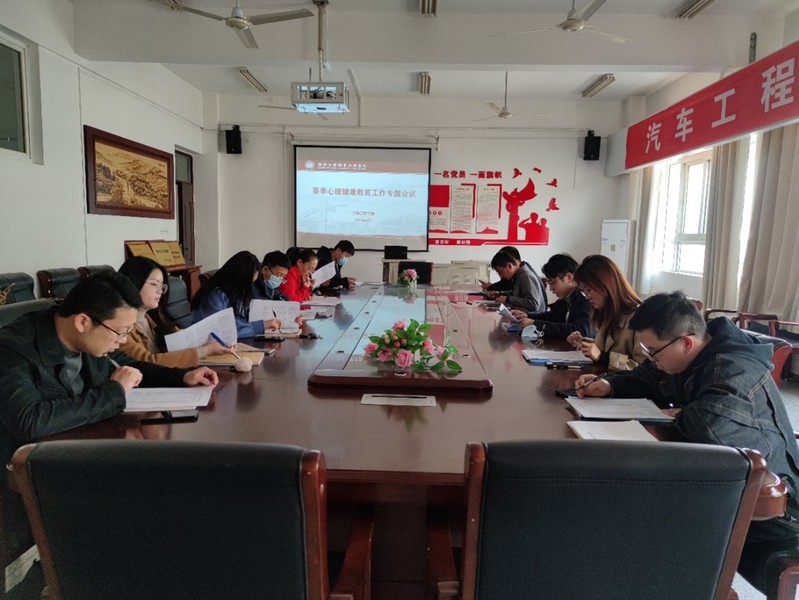 开展专题会议,筑牢安全防线。3月14日下午在B06-303召开了学生心理安全工作辅导员专题会议,汽车工程学院党总支书记顾广辉及全体辅导员参与。会上,顾广辉主要从近年来校内外发生的学生突出心理问题案例入手,分析了心理问题频发的主要原因、类型以及干预方式。同时也提出了具体要求:一是由于学生心理问题产生的原因复杂、类型多、隐蔽性强,要求辅导员要多观察、多沟通,做到“早发现、早预防、早干预”,提高心理工作的精准性;二是完善心理预警网络建设,健全辅导员-班主任-心理委员-宿舍信息员四级责任体系,形成心理育人的合力。 三是辅导员要多鼓励学生参加校内各项文体和社团活动,多动起来、忙起来,建立积极乐观阳光的人生观。