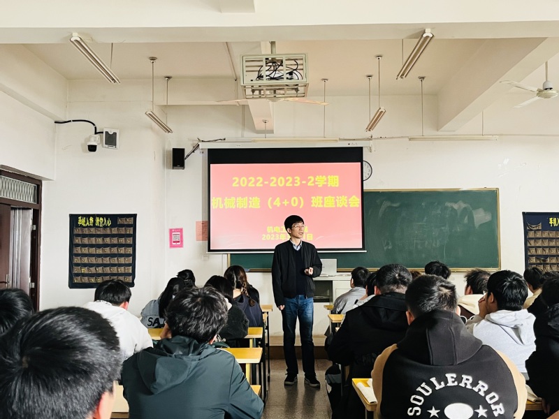 3月31日下午,机电工程学院在B17-408召开2022级机械设计制造及自动化(4+0)班级座谈会。副院长徐昆鹏、班主任周波以及该班的全体同学参加了座谈会。