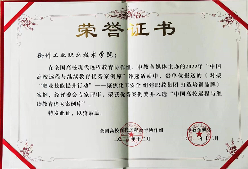 为更好推动我国网络与继续教育事业的发展,发挥优秀院校和企业榜样作用和影响力,推广远程与继续教育典型经验和案例,近日,我国远程与继续教育行业最具影响力年度盛会——中国远程与继续教育大会(2022-2023)在北京召开,我校获评“2022品牌影响力院校”、“2022中国高校继续教育优秀校外教学点”;选送的《对接“职业技能提升行动”-----聚焦化工安全 组建职教集团 打造培训品牌》的培训案例,荣获“2022高校远程与继续教育优秀案例奖”,并入选优秀案例库。