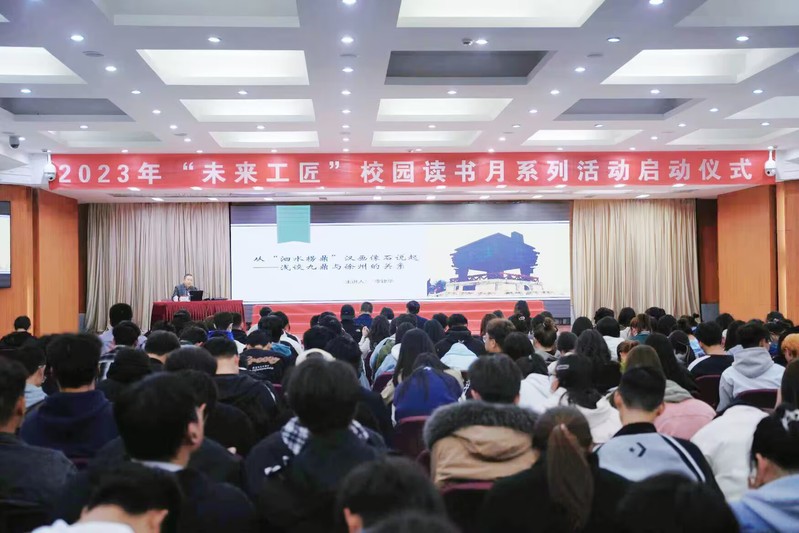 启动仪式后,图文中心邀请了徐州作家协会会员李建华老师作专题讲座。李建华以《从“泗水捞鼎”汉画像石说起——浅谈九鼎与徐州的关系》为题展开,深入解读了“泗水捞鼎”的历史,讲述徐州当地的汉文化历史,让师生在感受中华悠久历史文化的同时,加深了对汉文化和徐州历史的了解。李建华还鼓励大家在读书的道路上保持热爱,不断充实自己,为实现个人价值和民族复兴贡献力量。孙健身作点评,希望师生增强文化自信,进一步增强爱国、爱校的使命担当,激励同学们要珍惜学习机会,不断充实自我、完善自我,立志成为“四有”青年,为国家发展和民族复兴贡献青春力量。