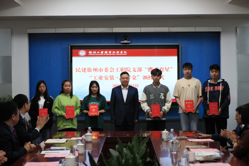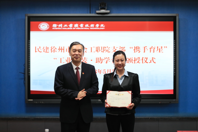 5月5日下午,民建市委会徐工职院支部在行政楼三楼会议室举行“携手育星--工业安装•助学金”颁授活动。民建江苏省委副主委、徐州市人民政府副市长、民建徐州市委会主委林斌,我校党委书记祝木伟,党委副书记李红出席活动,党委委员、党委统战部部长乔向东,党委委员、教务处处长侯亚合,学工部部长阮浩,民建徐州市委专职副主委王奉君、民建徐工职院主委张敬斋及支部会员代表和受资助的少数民族学生参加颁授活动。