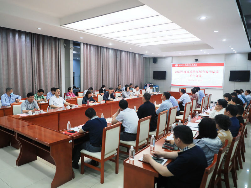 为深入开展习近平新时代中国特色社会主义思想主题教育,5月23日,我校在图书馆视频会议室召开高质量发展和安全稳定工作会议。党委书记祝木伟出席会议并讲话,会议由院长刘莹主持。党委副书记李红、副院长孙健身、副院长张芳儒、副院长曾凡远、纪委书记葛志亮出席会议,相关职能部门、二级学院负责人参加会议。