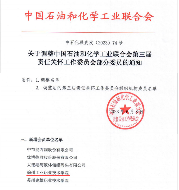 2023年6月8日,中国石油和化学工业联合会责任关怀工作委员会根据《责任关怀工作委员会工作章程》规定,会议表决通过我校在内的5家单位加入。