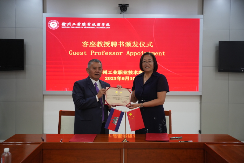 最后我校与柬埔寨经济管理大学签署了合作意向书,并聘请通菲克迪博士为客座教授。我校将以此次访问为契机,开启与柬方教育合作交流新篇章,为柬埔寨培养当地经济社会发展需要的高端技术技能人才,助力“一带一路”建设。
