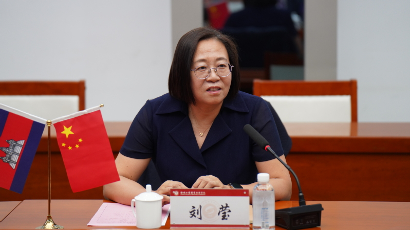 刘莹院长首先代表学校向来访客人表示热烈欢迎,并介绍了学校的办学历史、办学特色、专业设置、国际合作交流等情况,表示学校希望与柬埔寨管理经济大学开展合作,尤其是在学生联合培养以及服务在柬埔寨的中资企业等方面开展深度合作。