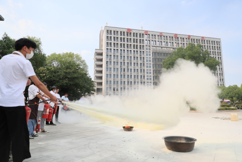 在消防安全技能培训中,杜教官进一步讲解了灭火器的使用方法和注意事项,并指导在场人员分组进行现场灭火实战演练。通过实战演练帮助我校师生员工提升消防安全技能,增强应对和处置突发火情的能力,为校园消防突发事件及时处置奠定了基础。