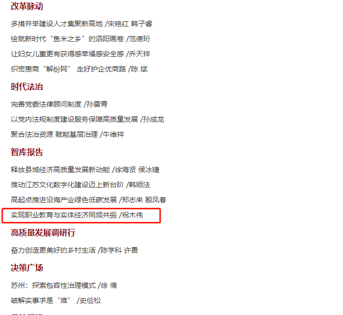 近日,中共江苏省委机关刊《群众》(决策资讯版,2023年第12期)刊发我校党委书记祝木伟署名文章,题目为《实现职业教育与实体经济同频共振》。