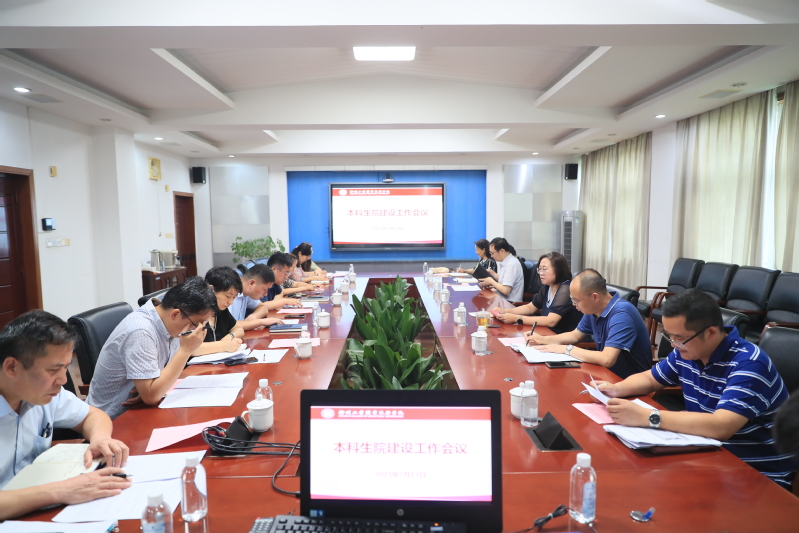 7月13日上午,我校在行政楼三楼会议室召开本科生院建设工作会议,刘莹院长出席并主持会议,相关职能部门及二级学院主要负责人参加会议。