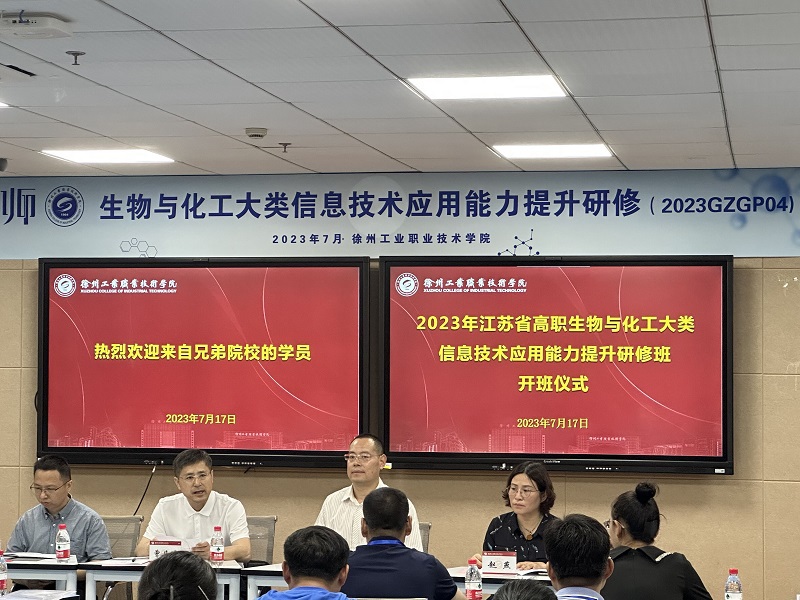 为落实教育部“教师数字素养”标准,培养教师数字化意识、提升教师数字技术知识素养与技能,7月17日上午,2023年江苏省高等职业院校生物与化工大类信息技术应用能力提升培训项目在徐州工业职业技术学院顺利开班。开班仪式由化学工程学院院长张雷主持。徐州工业职业技术学院副院长曾凡远、教师发展中心主任赵燕、化学工程学院副院长陈群玉以及班主任时光霞和来自全省的40名学员出席开班仪式。