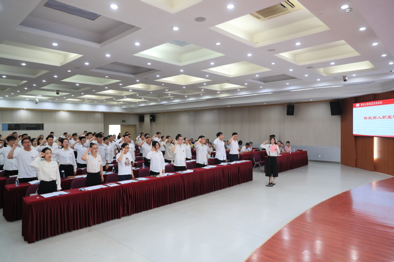 新加入徐工院大家庭的新教师进行了入职宣誓。新教师入职宣誓,旨在激发新教师的职业荣誉感和自豪感,坚定新教师的职业信念和职业操守,提升新教师教书育人的责任感和使命感。铿锵有力的宣誓词表达了他们立志做一名光荣的人民教师,为祖国培养合格的社会主义建设者和接班人的坚定信心和决心,也是对人民教育事业立下的庄严承诺。