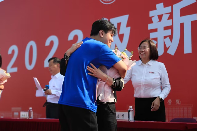 今年,学校邀请了新生家长代表,新生代表向家长献花、拥抱,表达最真挚的感激与爱意。掌声、拥抱、笑颜,一幕幕温情的画面令全场师生、家长为之动容。家长表示,献花环节让他们既惊喜又感动,让他们感受到工院的温度,表示把孩子交给学校非常放心。希望同学们永怀感恩之心,用奋斗与汗水洒满求学之路,让青春熠熠生辉,让自己成为父母最大的骄傲!