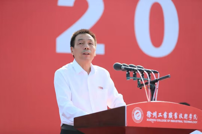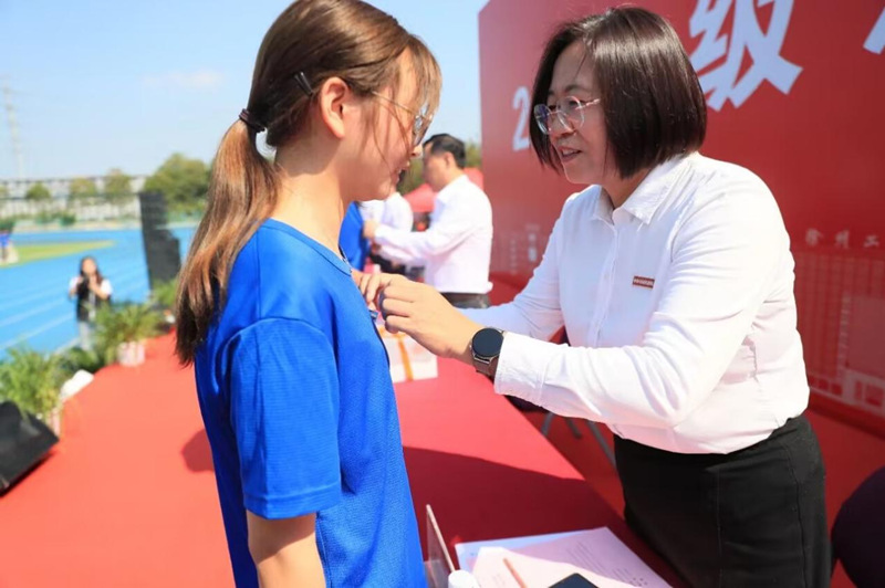 教师代表、全国职业技能大赛优秀指导教师、江苏省“青蓝工程”优秀教学团队带头人、工商管理学院教师张晓燕发言,她对各位新同学加入工院表示欢迎,并寄语同学们要珍惜宝贵的大学时光,用拼搏书写青春故事,用拼搏为青春增光添彩。