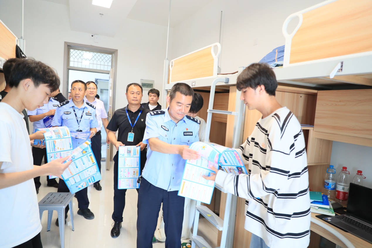 徐州市公安局鼓楼分局反诈民警和网安民警一行走进学校,走进宿舍,走进学生,为我校学生做网络安全知识宣讲,让学生了解网络中存在网络安全风险的各种形式,提醒学生在日常生活中要提高安全防范意识,不要轻信陌生短信、电话、QQ以及陌生网站等信息,更不要轻易汇款,谨防上当受骗。通过防范网络安全风险知识的宣讲,让学生对网络安全有了更深刻的认识,有效增强安全防范能力。