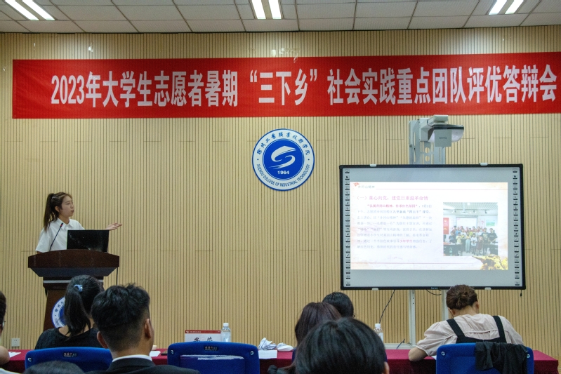 为引领和教育广大青年深入基层、走向社会,切身感受党的领导下过去五年和新时代十年取得的伟大变革,进一步深化实践育人效果,交流实践经验,9月15日,我校2023年大学生志愿者暑期“三下乡”社会实践优秀团队答辩会在教师发展中心报告厅顺利举行。团委书记安莹、学工处副处长秦黎明、机关党总支副书记郝红艳、团委副书记魏宇川、马克思主义学院思政教师张颖出席了答辩会并担任评委。