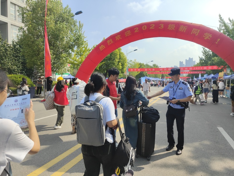反诈宣传进校园。“新生入校的‘第一时间’就是反诈的‘最好时间’”,鼓楼分局反诈中心王海主任如是说。新生报到期间,保卫处联同鼓楼分局反诈中心、九里派出所、九里街道办事处等单位在学校东、西大门分别设立了反诈宣传站点,向踏入校门的新生和家长们宣讲校园电信诈骗常见类型的特点、危害及作案手法,帮助其树立防骗意识,累计发放反诈宣传资料近5000份。看到校门口敬业的“警察叔叔”们,新生纷纷表示“来到工院很踏实!”