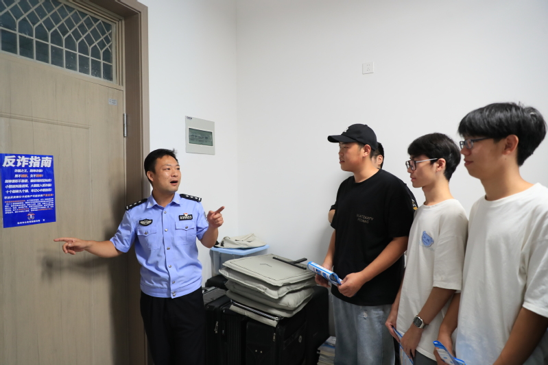 反诈宣传进宿舍。9月15日,学校保卫处联合鼓楼区反诈中心民警和九里派出所民警开展“反诈宣传进宿舍,安全意识驻心间”专项活动,深入学生宿舍,指导学生正确使用国家反诈中心APP,并将常见电信诈骗的类型和伎俩编成顺口溜,定制成为专属反诈宣传海报张贴在全校2000余间宿舍内,让学生们时时感受到浓浓的反诈氛围,绷紧心中防范之弦,真正让防骗意识、识诈技能深入到学生们的眼里和心里。