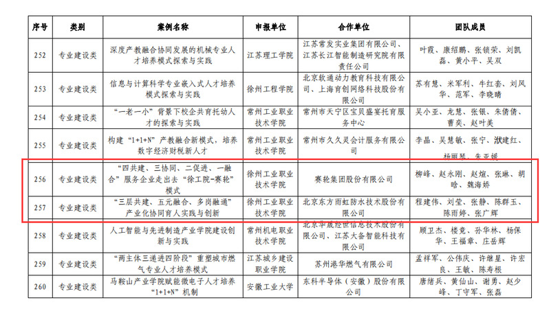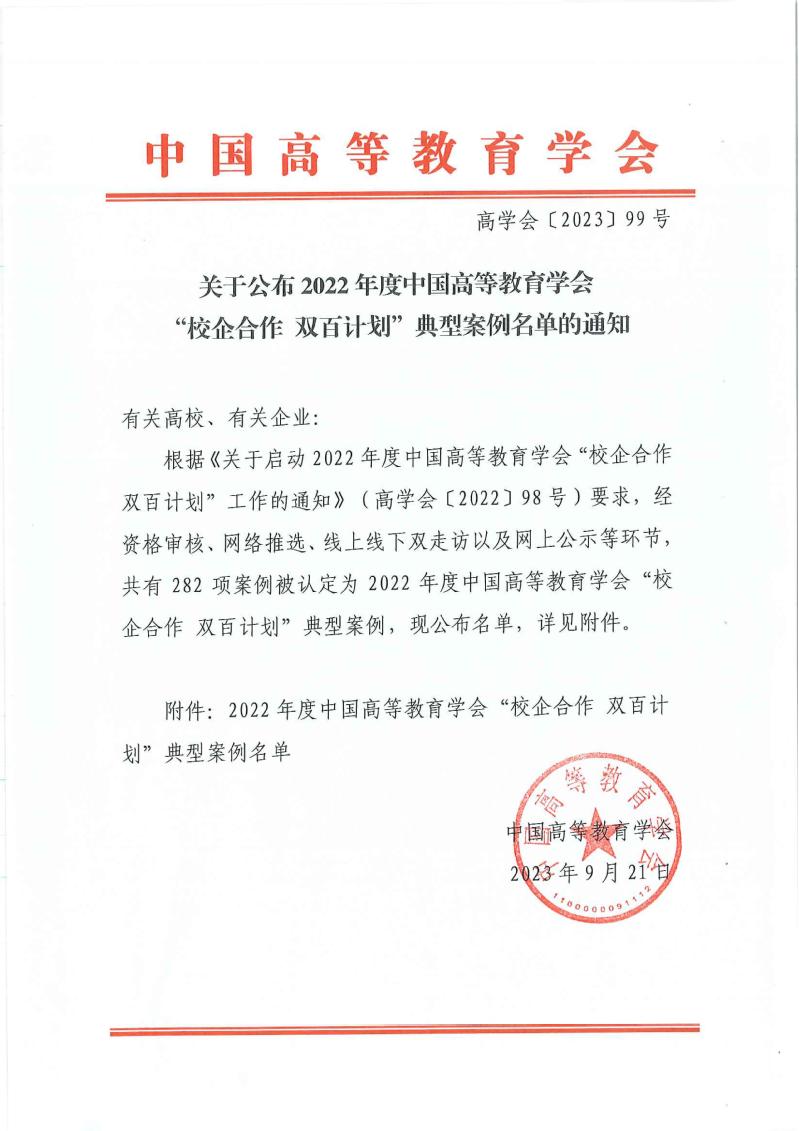 近日,中国高等教育学会公布了2022年度“校企合作 双百计划”典型案例名单,经资格审核、网络推选、线上线下双走访以及网上公示等环节,共推选产生282项典型案例。其中,我校提名的《校企共建产业学院,“1+1+N”模式协同育人》《“四共建、三协同、二促进、一融合”服务企业走出去“徐工院-赛轮”模式》《“三层共建、五元融合、多岗融通”产业化协同育人实践与创新》3项案例被认定为典型案例。