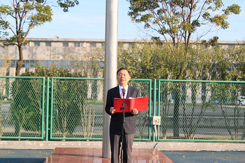 孙健身发表了“与祖国共奋进,与工院同发展”为主题的讲话。他指出,广大师生要不断深化爱国之情、砥砺强国之志、实践报国之行,让爱国主义精神代代相传,发扬光大。他对同学们提出了三点希望:一是要修身立德,在心系家国中树立远大志向。每一位同学,都要珍惜学习时光,用实际行动践行报国之行,努力成为“有德、有技、有能、有为”的高素质技术技能人才。二是要脚踏实地,在勤学精进中锤炼过硬本领。号召同学们向中华人民共和国第一届、第二届职业技能大赛银牌、金牌获得者,我校化学工程学院王德龙、姜雪程两位同学学习,刻苦锤炼实践技能,不断追求卓越。三是要强健身心,在磨炼意志中砥砺坚韧品格。在专业技能的磨炼中,不断提升个人品质,成为具有高超技艺和严谨作风的优秀人才,在未来的国家建设中担当重任。