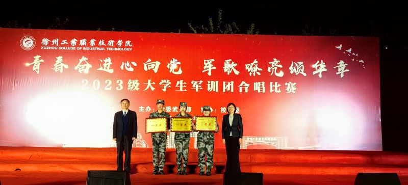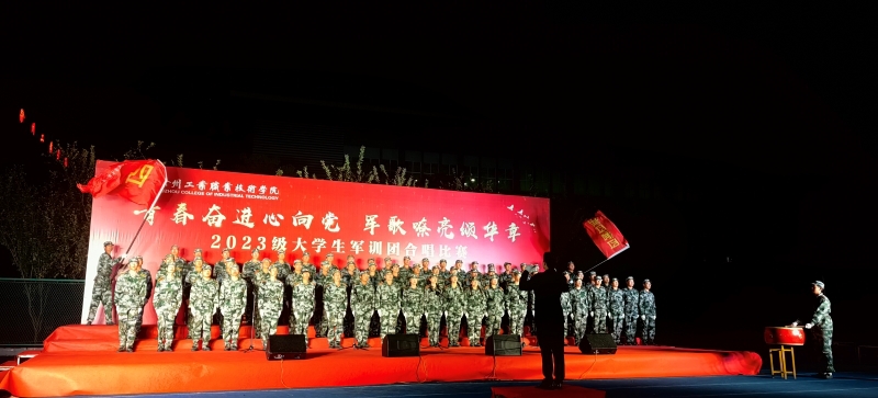 军训期间为进一步激发学生“爱党、爱国、爱军”热情,丰富大学生的军训生活,10月20日晚,由学校党委武装部主办、校团委协办的“青春奋进心向党 军歌嘹亮颂华章”2023级学生军训团合唱比赛在学校田径场拉开帷幕。学校党委副书记李红、副院长孙健身出席活动,武装部部长阮浩、校团委书记安莹、各二级学院党总支副书记、辅导员、全体军训团教官以及全体2023级学生参加了活动。校工会主席刘新良、教务部副部长赵音、校妇委会副主任赵越,学工部副部长王萍(挂职),基础教学部陶园老师应邀担任本次比赛评委工作。