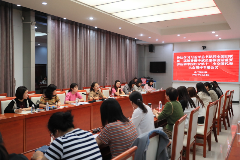 11月2日,校妇联在视频会议室召开专题座谈会,传达学习习近平总书记同全国妇联新一届领导班子成员集体谈话时的重要讲话精神和中国妇女十三大精神。校妇联执委、二级学院妇联主席,青年女教师、女学生代表参加了会议。