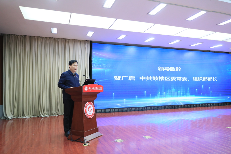 贺广启在致辞中表示,近年来,鼓楼区深入推进“四区”同建,致力于筑巢引凤、建强平台,把人才作为制胜未来的“战略投资”。徐州工业职业技术学院作为徐州市唯一一所以工业命名、办学专业全口径对接地方产业发展的职业院校,为徐州市、鼓楼区输送了大批高素质技术技能人才,为徐州经济高质量发展提供了人才支撑,更在技术技能人才培养、科技成果落地转化等方面作出了重要贡献。希望下一步将以本次活动为媒,探讨交流,洽谈合作,共同谱写校地协同创新发展新篇章。