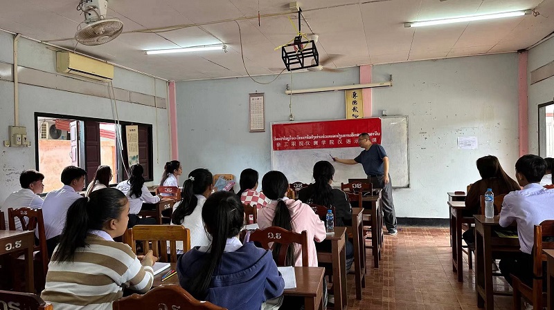 在老挝期间,范震波老师利用课余时间,克服旅途困难,走访老挝沙耶武里省立高级中学、沙耶武里省班帕嫩职业中学等中等学校,了解当地中等(职业)教育的开展情况,尝试建立国际生生源基地项目。在深化我校与老挝中学的联系和沟通、扩大我校影响力和美誉度的同时,搭建常态化国际生源招生平台,为学校国际化招生工作开辟新思路、新渠道和新途径。