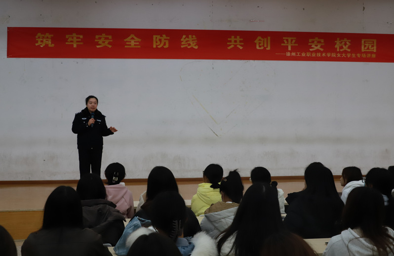 徐州市公安局王妍警官受邀走进徐州工业职业技术学院,王警官结合发生的真实案例,以案释法,向学生们传播了女性安全和自我保护方面的经验和专业知识。讲座中,王妍警官用生动的案例和实用的技巧,向女生们讲解了如何在校园内外保护自己的安全。