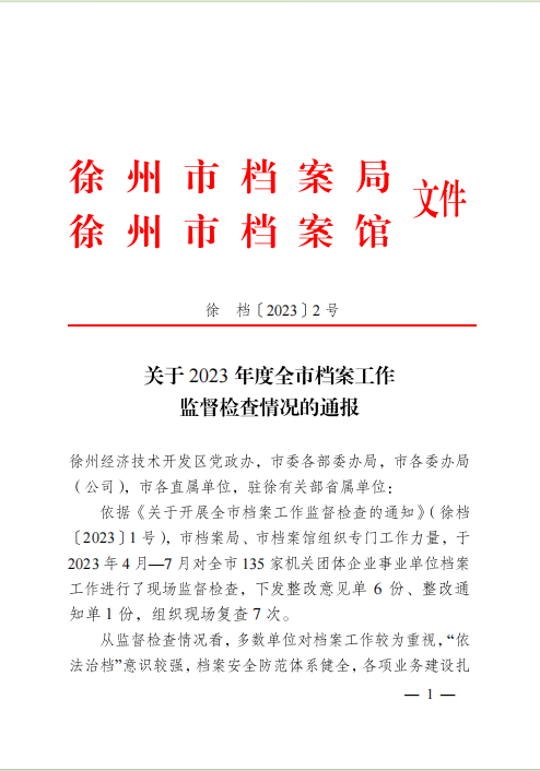 此次市档案局、市档案馆组织专门工作力量,于2023年4月至7月间,对全市135家机关团体企业事业单位档案工作进行了现场监督检查,对档案工作实绩较为突出的单位予以通报表扬。此次获得表彰,是对我校档案室工作的高度认可和嘉奖,更是对我校档案工作人员的辛勤付出的肯定和鼓励,我们将以此次获奖为契机,加快推进标准档案馆(室)建设,提升档案利用水平,助力学校双高建设和职业本科创建。