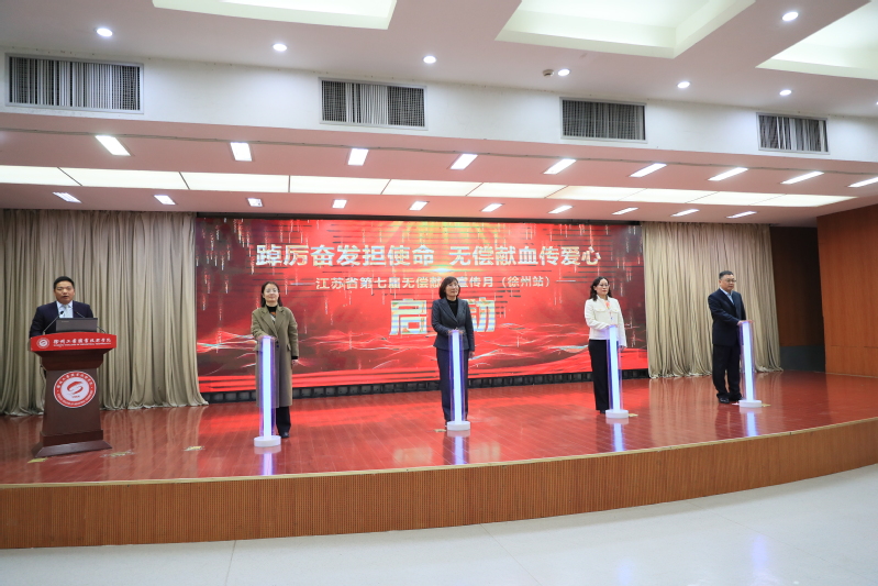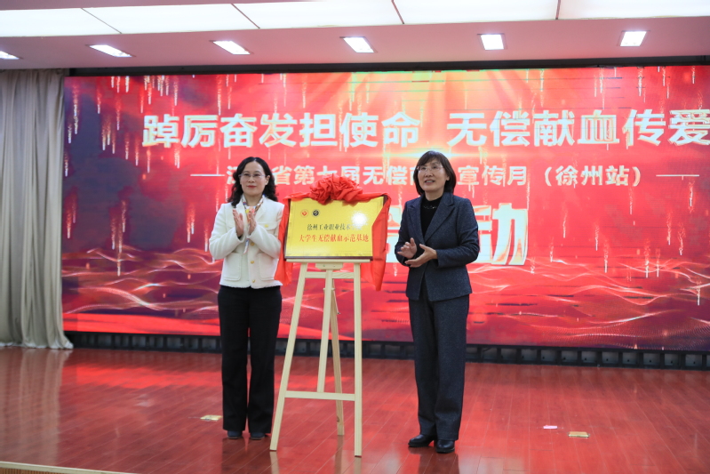 在热烈的掌声中,与会领导按下启动按钮,宣布江苏省第七届无偿献血宣传月(徐州站)活动开启,并共同为大学生无偿献血示范基地揭牌。