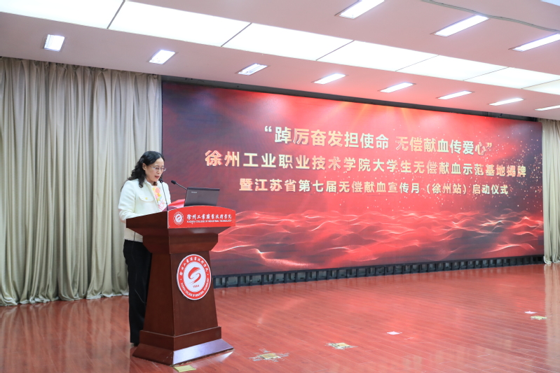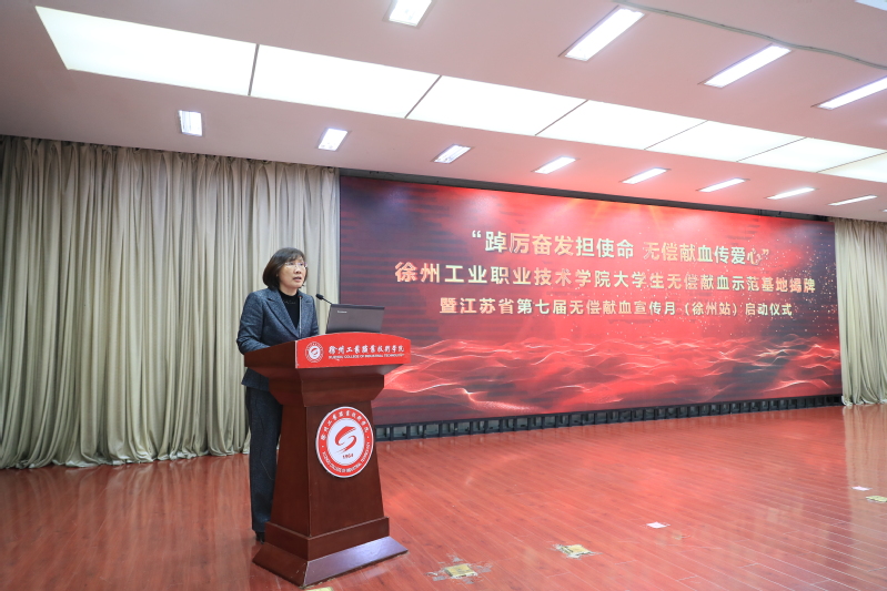 为更好普及无偿献血知识、弘扬志愿精神,12月1日,由徐州市红十字血液中心和我校共同举办的徐州工业职业技术学院大学生无偿献血示范基地揭牌暨江苏省第七届无偿献血宣传月(徐州站)启动仪式在我校图书馆报告厅成功举行。徐州市红十字血液中心主任周丽玲、副主任李慧,我校党委副书记李红、党委学生工作部部长张妍妍、校团委副书记周开源出席活动,200余名师生代表参加了本次活动。