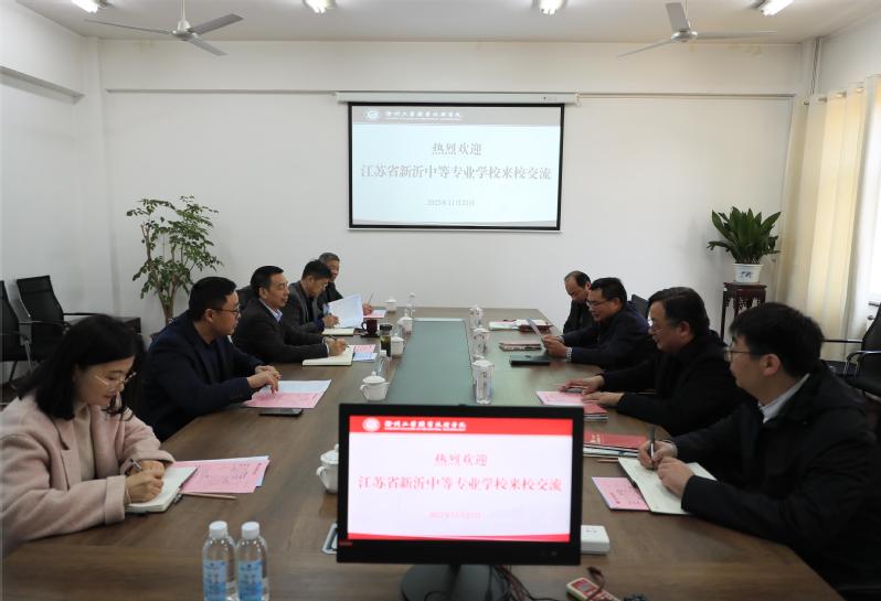 近日,新沂中等职业学校校长倪浩、副校长韦永、教务处处长陈振江、办公室主任谭玮力一行四人,来访我校。院长鲍桂楠、副院长曾凡远及相关职能部门负责人参加座谈。