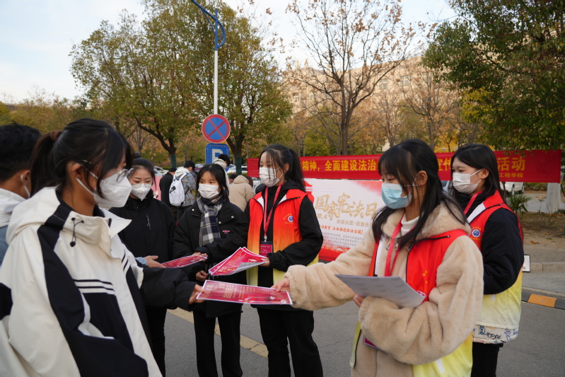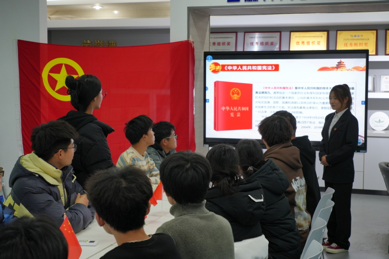 12月1日下午,信息工程学院在教师发展中心举办了“宪法与我们”宪法宣传周主题讲座,讲座邀请徐州市泉山区人民检察院普法宣讲团志愿者为学生讲法普法。活动现场,志愿者介绍了我国宪法发展历程和主要内容,结合实际案例讲解了宪法赋予公民的基本权利和义务,阐明了宪法的内涵,为学生们答疑解惑。讲座结束后,青年志愿者深入学生宿舍、操场、教学楼等地发放宣传单并进行解答,同时引导同学们下载国家反诈APP,本次活动共计发放宣传资料1000余份,服务人数超过2000人次。此外,信息工程学院还通过开展主题班会课、团日活动等形式,进一步弘扬法治精神,让法治观念入脑入心。