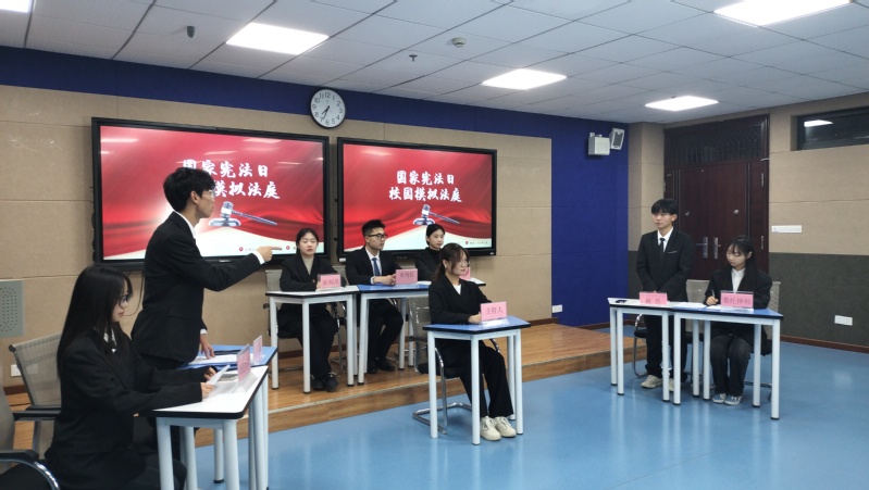 为掀起学生学习宣传宪法的热潮,助力法治校园建设,信息工程学院举办宪法知识竞赛和模拟法庭活动,进一步在校园内营造宪法学习氛围。知识竞赛活动赛题内容涵盖《宪法》、党纪党规及与人民群众日常生活密切相关的宪法法律知识,考查了学生对我国宪法内容的认识与理解等方面的情况;模拟法庭活动中,法官、律师、公诉人和法警均由学生出演,还原宣读庭审纪律、发言答辩、展示证据、法庭辩论等环节。模拟庭审贴近大学生生活实际,以检察机关办理的大学生帮信诈骗案为案例,真实再现了法庭的审判过程,身临其境地感受到了法律的威严,增强了同学们反诈骗和遵法守法的能力。
