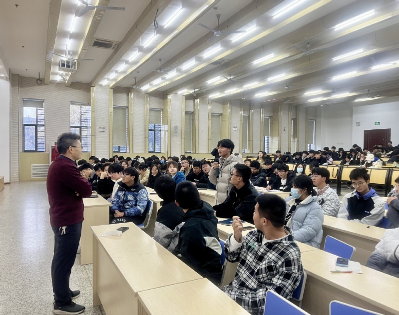 韩教授首先介绍了大学英语四六级考试的试题结构和分值分布,重点针对听力、写作、阅读理解、翻译等题型特点分别提出了具体的备考建议和答题技巧,并结合多年大学英语四六级考试培训的经验提出了冲刺阶段的复习安排和考试过程中的注意事项。在互动环节,同学们针对英语学习方面的困惑以及重难点与韩教授进行了深入地交流和探讨,同学们纷纷表示受益匪浅。