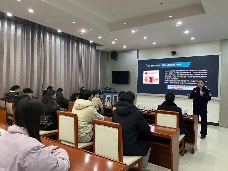 本次宣讲活动由徐州市公安局禁毒支队预防教育队队长、国家二级心理咨询师王妍警官主讲。王警官通过真实案例,生动阐述了毒品对个人身体、心理的摧残,讲解了毒品对家庭、社会的破坏。同时,她还着重向师生们介绍了如何识别毒品、防范毒品、拒绝毒品以及在面对毒品诱惑时如何处理等知识。通过视频直播和现场讲解、互动答疑等方式,帮助更多人认清了毒品的危害,提高对毒品的警觉性。最后,在禁毒办工作人员的引领和讲解下,现场学生逐一观看了仿真毒品,进一步树立自我保护意识,深化禁毒警示的教育成效。
