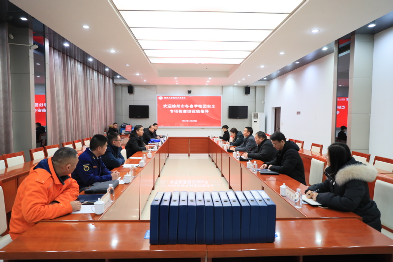 为推动全市教育系统重大安全事故隐患专项排查整治行动走深走实,全面排查和防范化解冬季重大安全风险隐患,12月25日,由徐州市教育、公安、消防、市场监管、电力等各领域专家组成的第一检查组来校检查。徐州市公安局内保支队副支队长冯涛传达了省市关于进一步做好教育系统安全检查工作的整体要求,院长鲍桂楠主持现场检查会,保卫处、党政办、教务部、学工处、后勤服务中心等部门负责人陪同检查。