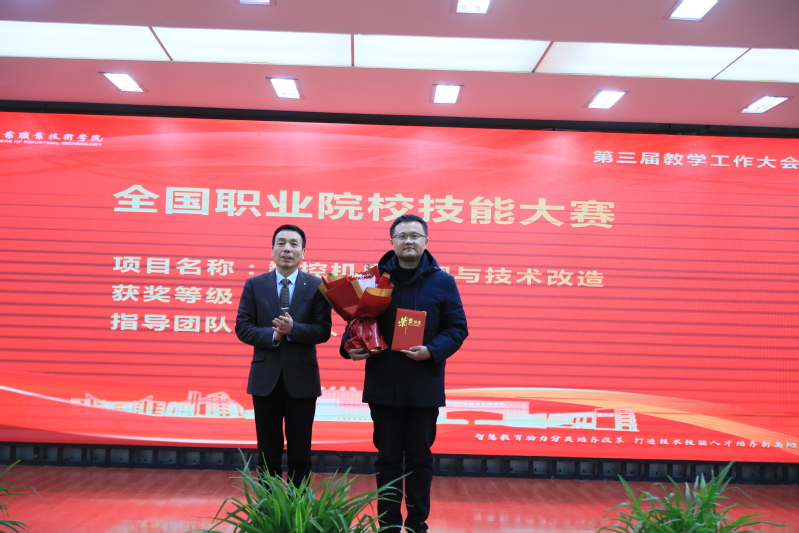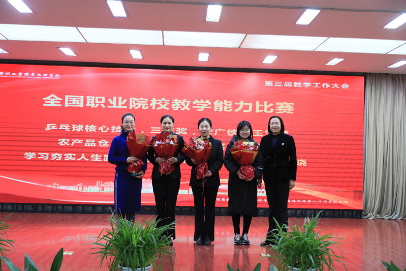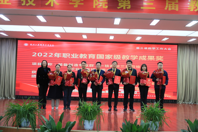 会议指出,学校党委和行政把教学工作作为学校中心工作,持续巩固提升人才培养中心地位,人才培养质量不断提升,取得了可喜成绩:一是专业建设成效显著。国省校“232”专业群发展格局成效凸显,38个专业中20个专业全国前20%,其中1个专业全国唯一、一个专业全国第1、3个专业全国前3、5个专业全国前5%、10个专业全国前10%;双高专业群中期绩效评价获“优”,省内C类第一。二是教学资源量质齐升。建成了学校智慧教育平台,主牵头建设专业教学资源库国家级1项、省级专业教学资源库1项,在线精品课程国家级3门、省级24门、校级105门,职业教育课程思政示范课国家级1门、省级1门,首批“十四五”职业教育规划教材国家级14部、省级9部;在教育部推进的现代职业教育体系建设改革重点任务中,我校主要牵头或参与牵头的5个专业教学资源库、6个开放型区域产教融合实践中心、1个虚拟仿真实训基地、3本优质教材、1个校企合作典型生产实践项目被推荐至教育部遴选。三是教学改革再创佳绩。作为主持单位再获国家级教学成果二等奖2项、作为参与单位获二等奖2项;获全国职业院校教学能力大赛二等奖1项、三等奖2项,实现了近年来的突破;获中华人民共和国第二届职业技能大赛金牌1项,全省仅2所;获全国职业技能大赛二等奖1项;获全国创新创业大赛金奖2项、银奖3项、铜奖1项,全省前3;1个现场工程师项目被推荐至教育部遴选。
