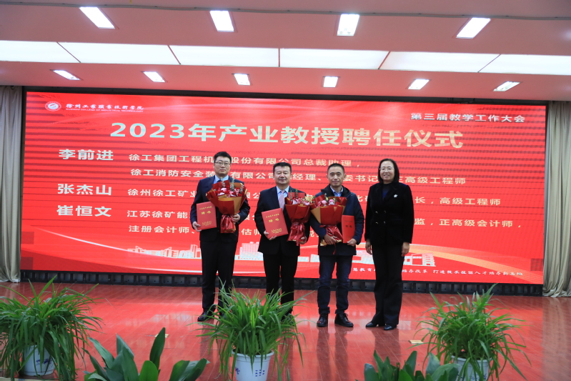 随后,举行了我校2023年江苏省产业教授聘任仪式。四位与我校专业高度契合的行业、企业和科研院所的领军人才成为我校产业教授。我校高度重视产业教授队伍建设,自2017以来共聘任7批27名江苏省产业教授,在三批期满考核中有4人聘期考核优秀,他们的加入,优化了学校“双师型”师资队伍,推进了技术研究和成果转化,使教育教学更加贴近实际生产过程、更加符合行业发展需求、更加适应未来科技趋势和社会变革的挑战,为培养更多经济社会发展急需的高素质技术技能人才培养提供了有力支撑。