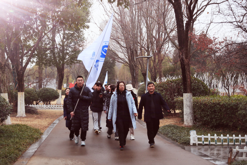 领风踏劲浪,阔步向前行。教职工们从篮球场出发,沿着自强路至学校西门、玉潭湖环湖路、学校西门,最终到达篮球场。教职工们在刘书记的带领下,各分工会三五成群迈着矫健的步伐,沿着行进的路线前进,他们有的大步流星,有的闲庭信步,都洋溢着新春的喜悦与快乐,享受着健康运动带来的身心愉悦。健步走的行程在玉潭湖公园的美景中徐徐展开,枫丹、菊黄、松绿、鸟鸣、人群,构成了最和谐的风景画面。冬日严寒,教职工热情似火,大家朝着健康前进,向着幸福出发。