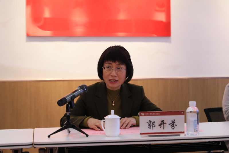 郭开芬代表民进徐州市委会向长期以来关心支持徐州民进工作的学校党委和党委统战部表示衷心感谢,向新当选的委员表示热烈的祝贺。她勉励新一届班子成员充分发挥自身特色优势、主动担当作为,特别是在强化政治引领、铸牢思想根基,抓好自身建设、增强组织活力,提高履职能力,实现双岗建功等方面主动融入、施展才华,传承好、发扬好民进在教育主界别的传统底蕴和特色优势,在学校发展和服务地方的重大需求中找准自己的坐标,以高端引领和勇于担当的理念推动高质量发展,努力探索与职业教育发展相适应的参政党工作机制。