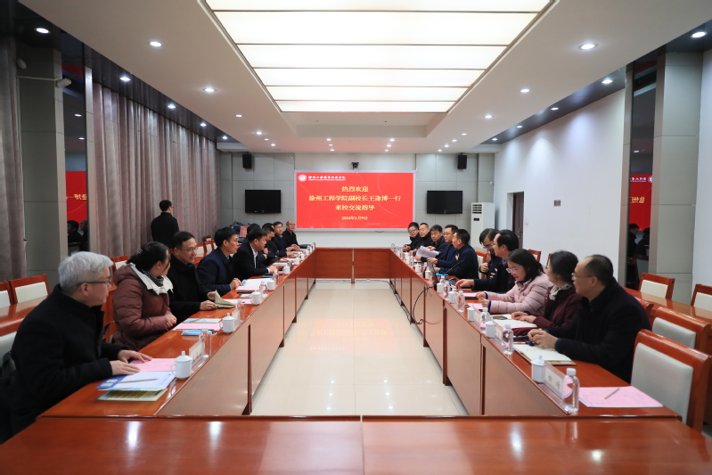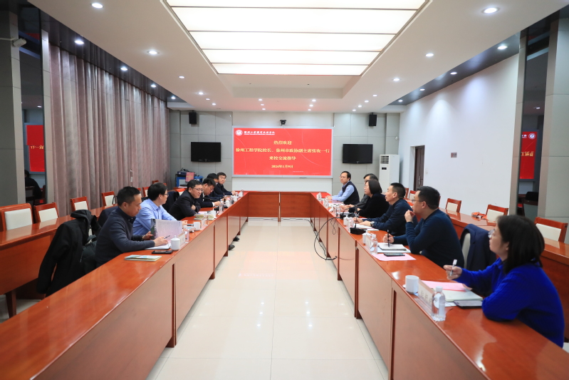 1月9日,徐州工程学院校长、徐州市政协副主席张农、徐州工程学院副校长王逢博一行来我校调研交流。党委书记刘莹、院长鲍桂楠、副院长张芳儒,相关职能部门和各二级学院负责人参加交流座谈。